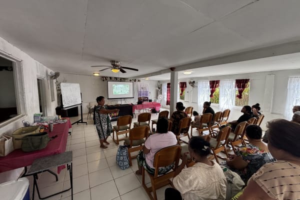 Doula Linda Kasio teaches a village educational at the Berea Evangelical Church in Santa Ana, Dededo, in November 2025.